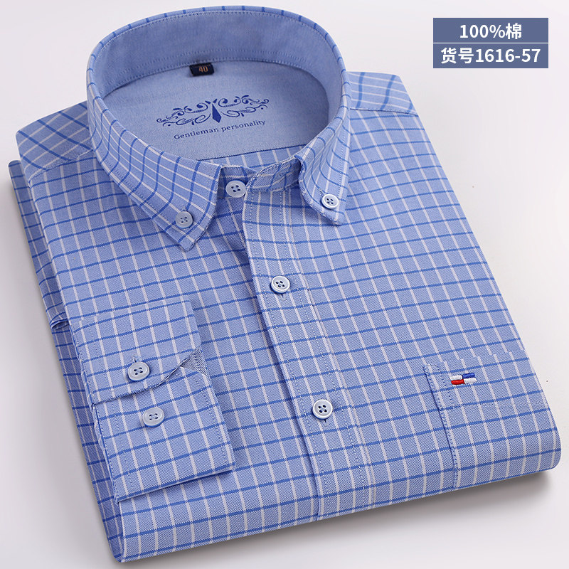 纯棉牛津纺衬衫男长袖中年商务休闲格子宽松全棉中老年大码衬衣潮热门设计联盟服务商
