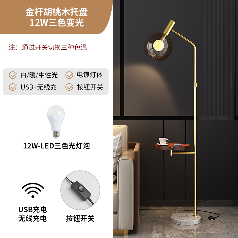 客厅落地灯北欧沙发轻奢极简ins风茶几置物架无线充电设计师台。热门设计联盟服务商