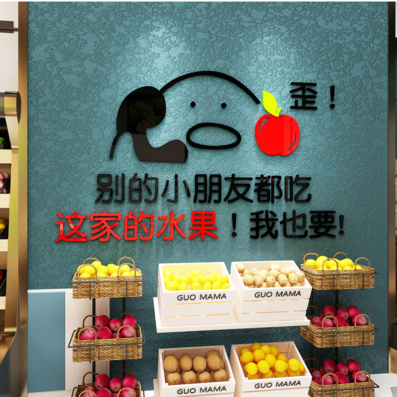 水果店装饰用品装修布置墙贴纸画自粘创意搞笑海报玻璃门网红背。热门设计联盟服务商