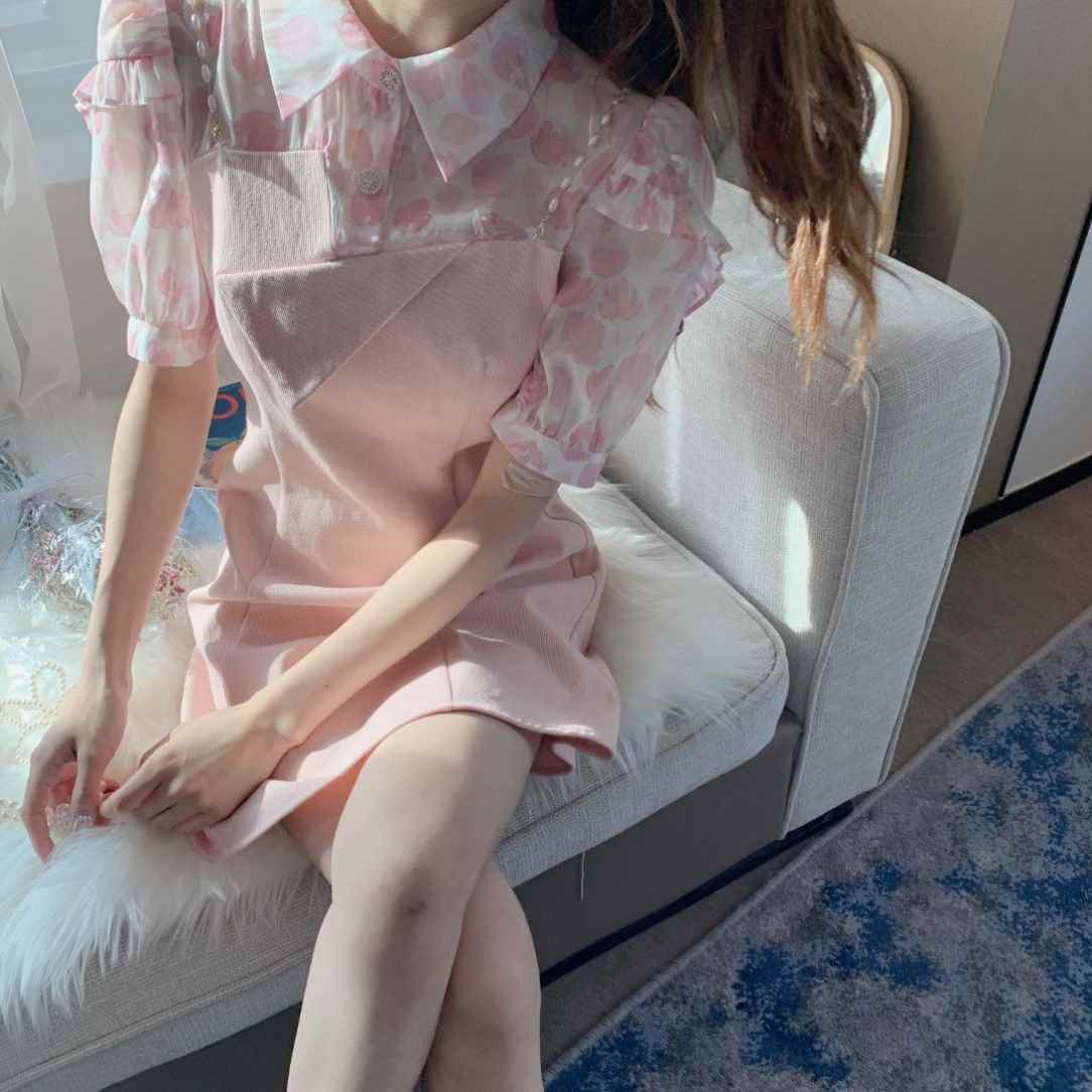 小小菲子酱服饰【花样年华-假两件裙】印花小众设计感甜美连衣裙热门设计联盟服务商