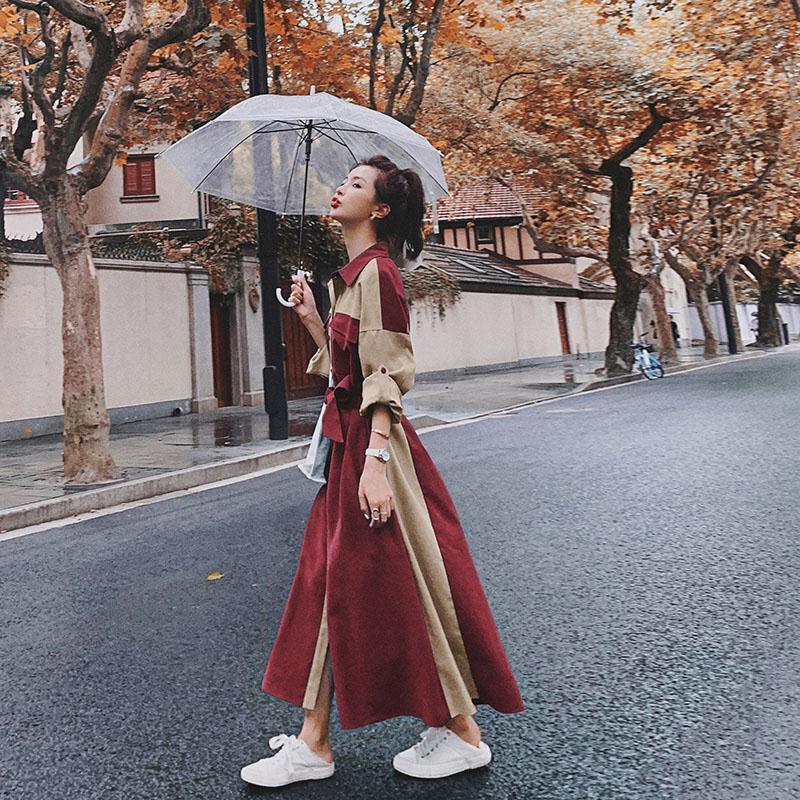 拼接连衣裙设计感小众气质女神范长袖衬衫裙子仙女超仙森系早秋新热门设计联盟服务商