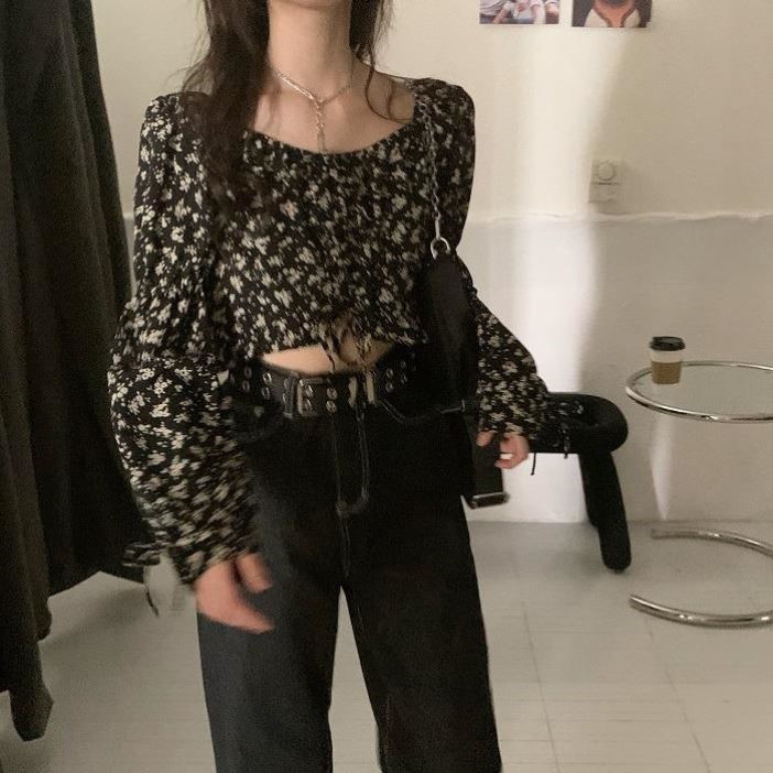 小众系带设计感衬衫女装气质碎花短款衬衣韩版秋季长袖修身上衣潮热门设计联盟服务商