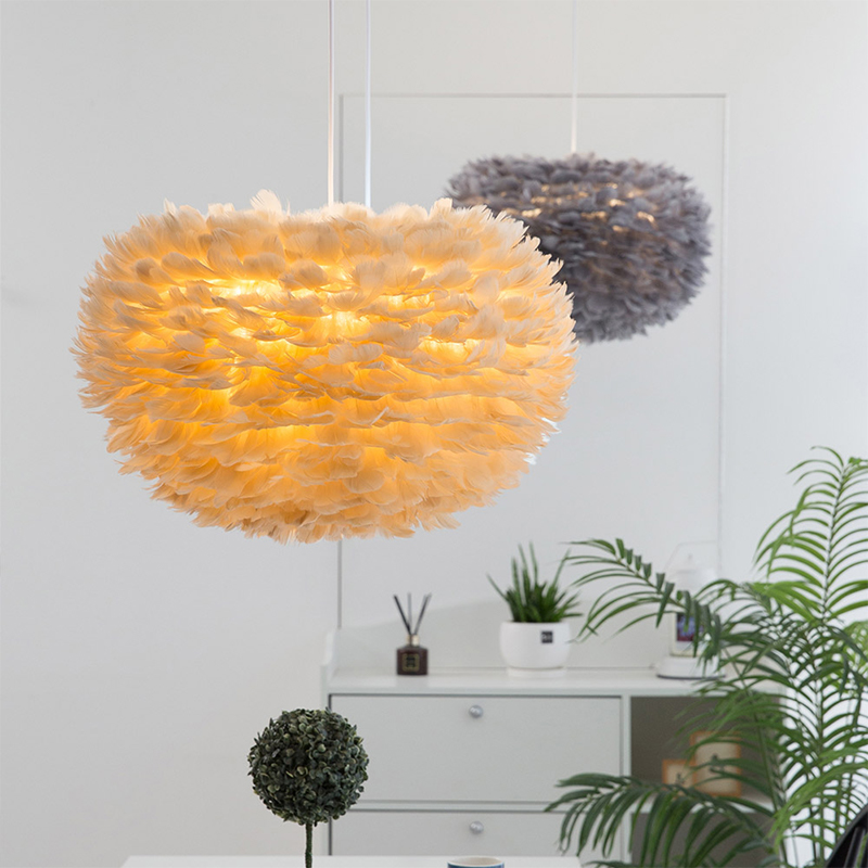 北欧简约现代个性羽毛灯设计师卧室儿童房韩国中古ins风创意吊。热门设计联盟服务商