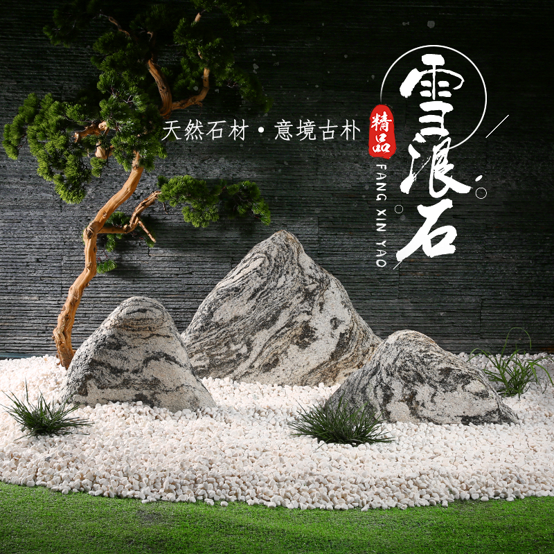 雪浪石景观石室内新中式枯山水布置造景现代石雕假山石切片设计热门设计联盟服务商
