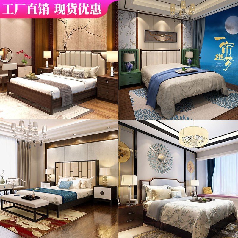 新中式实木床标准间客房家具星级酒店宾馆民宿客栈全套样板房间床热门设计联盟服务商