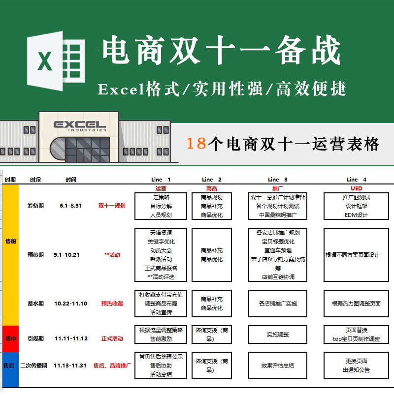电商模板备战一双十流程运营活动方案报告表格数据大营销分工促热门设计联盟服务商