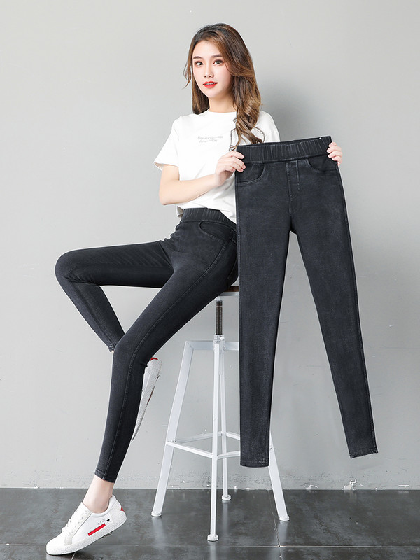松紧八分牛仔f裤女打底裤外穿小脚秋冬加绒新款高腰显瘦九分小黑热门设计联盟服务商