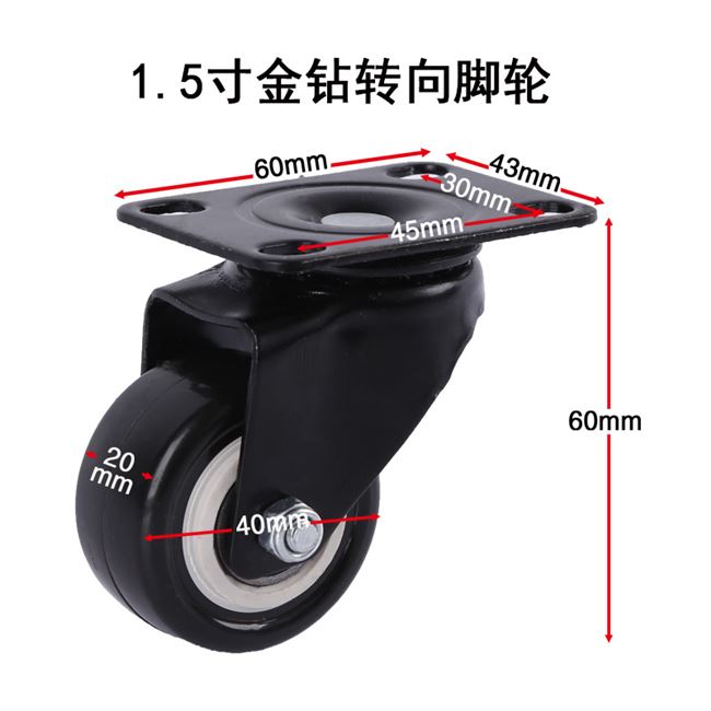 金钻轮1.5寸2寸2.5寸3黑色双轴承聚氨酯轱辘万S向轮小脚轮子刹车热门设计联盟服务商
