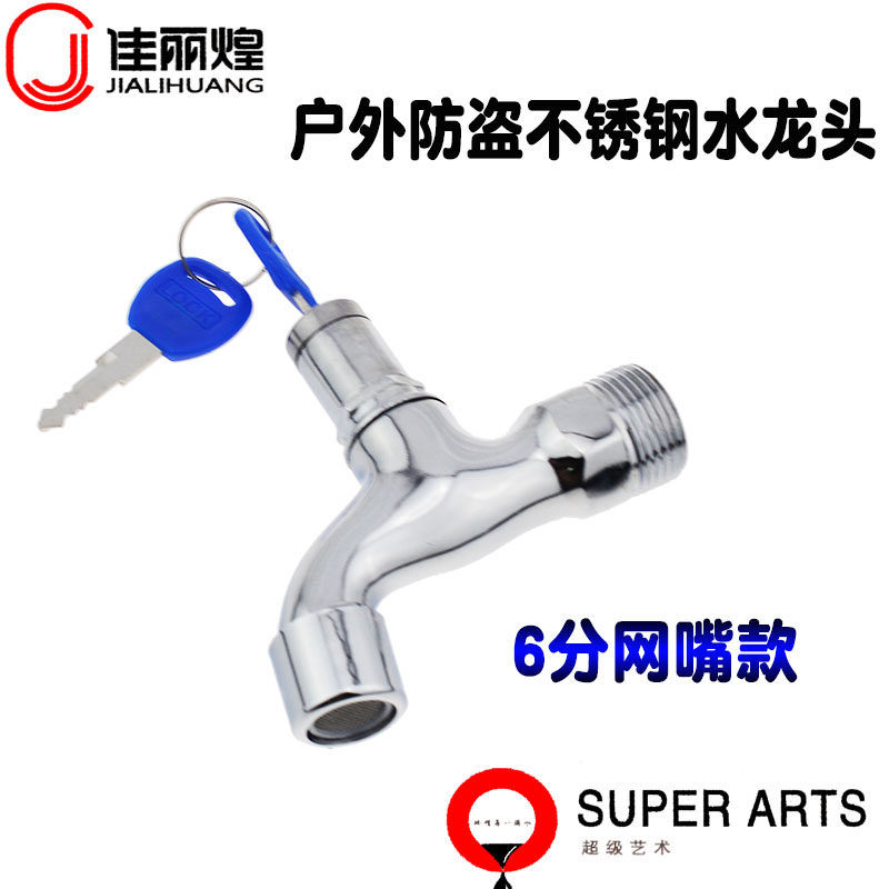 6分室外带锁不锈钢拖把水池平网水嘴洗手池DN20防盗带钥匙水龙头热门设计联盟服务商