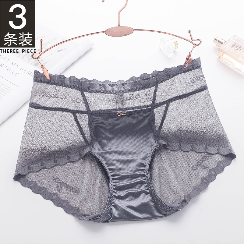3条装 蕾丝内裤女无痕夏季薄款三角透气日系中腰网纱短裤头少女生